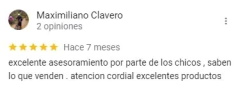 excelente asesoramiento por parte de los chicos , saben lo que venden . atencion cordial excelentes productos